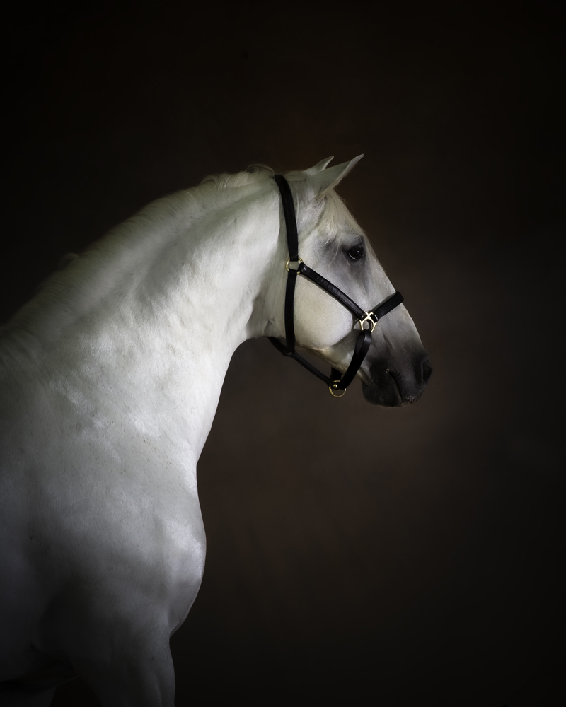 After setting up in an indoor space, which can be a stable, or a barn, or ideally an indoor school, we introduce your horse to the setting. Each horse is given all the time it needs to get used to the flashes and the background.